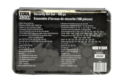 Dynaline (378) 77343 Security Bit Set - 100 pc, Pro Tool Black Table