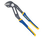 4935097 GV10S GrooveLock 10"/250 mm Smooth Jaw Pliers - 2-1/4" Jaw Capacity. Simple push of innovative press-n-slide button adjusts lower jaw 2X faster than traditional groove joint pliers. Multi-Groove Ratcheting System has twice the groove positions than any other groove joint pliers, providing precise jaw positioning to grip any type of surface. Anti-pinch, non-slip ProTouch™ Grips provide comfort, control, and less hand fatigue. Right angle teeth grip in all directions for maximum bite. Metal Injection Molding (MIM) process for precision parts delivers strength and exceptional performance. Available with straight, smooth, and v-shaped jaws. Product Features: Smooth Jaw Pliers. Model: GV10S. Size: 10" (250 mm). Jaw Capacity: 2-1/4". Jaw Positions: 16. Pipe Size: 1-1/2". Nut Size (across flats): 1.57" (40 mm).