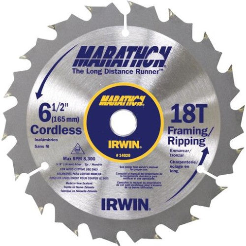 24020. Marathon® Cordless Carbide Circular Saw Blade - 6-1/2" Dia. 18-Tooth. For use with cordless saws. Ultra thin kerf for more cuts per charge. ...