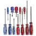 12 Pc. Phillips®/Slotted Acetate Screwdriver Set. Chrome Plated Shafts and Blades for Increased Corrosion Resistance. Blade Tips are Designed to Ensure Tighter Tolerance and Fit While Adding Convenience when Starting Fasteners. Ergonomic Tri-Lobe Extruded Acetate Handles Provide Increased Comfort and Maximized Torque for Driving and Loosening Fasteners. Easy to Clean, Chemical-Resistant Acetate Handle Stands Up to All Conditions. Phillips® Screwdrivers Feature Round Blades Slotted Screwdrivers Feature Square Blades.