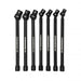 7 Pc. 3/8" Drive 6 Point X-Core™ Pinless Universal Impact Metric Extension Socket Set. X-Core™ pinless joint design for increased strength and durability. 30° maximum operating flex angle. Smooth 360° rotation for easier access. Off-corner loading design reduces fastener rounding. Chrome molybdenum alloy steel (Cr-Mo) for exceptional strength and durability. Black oxide finish to resist corrosion. 6-point socket with a 9" overall length for even more access. High-visibility laser etched markings provide quick size identification. Meets or exceeds ASME specifications. Includes socket rail for storage and organization.