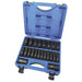 Carefully selected assortment of impact sockets needed for most industrial applications and includes a convenient blow mould case with removable lid for easy storage and organization. Sockets made of the finest quality S.A.E. 4140 Chrome Molybdenum high impact steel. TORQUE DRIVE® socket design contacts the fastener on the sides instead of the corners, reducing fastener rounding and allowing up to 20% more torque. Chamfered edges allow easiest socket placement on fastener, increasing productivity and reducing frustration. Extra long deep sockets ensure maximum accessibility. Meets or exceeds U.S. Federal Specs: GGG-W-660A and ANSI specifications