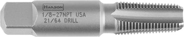 1902ZR. Hanson® Taper Pipe Tap (HCS) - 1/8" - 27 NPT. Ideal for pipe fittings. Cuts internal threads in pipes. Nominal size of the tap is that of the pipe fitting being tapped. Tapered at a rate of 3/4" per foot. Description: 1/8" - 27 NPT. No. of Flutes: 4. Tap Point Style: Taper Tap.