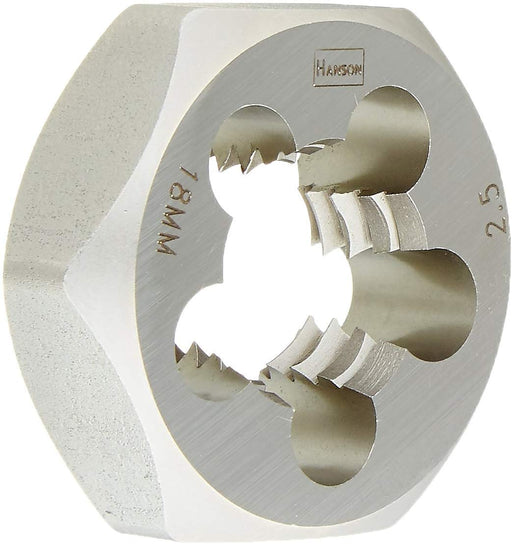 Hanson® Hexagon Metric Die (HCS) - 18.0 mm - 2.50 mm - 1-7/16" OD. Ideal for automotive repair and machinery where metric threads are specified. De...