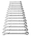 14 Pc. 120XP Universal Spline XL Ratcheting Combination Metric Wrench Set. 120XP Ratcheting Box-End with 120 Positions Gives a 3° Swing Arc. Universal Spline Drive Works on 12-point, 6-point, Rounded 6-point, Spline, E-Torx and Square Fasteners. Reduced Diameter Ratcheting Box-End and Open-End for Increased Access. XL Beam Design is up to 25% Longer for Improved Reach. Bright, Full Polish Chrome.
