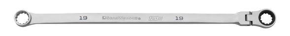 17mm 120XP Universal Spline XL GearBox Flex Head Ratcheting Wrench. 120XP Ratcheting Box-End with 120 Positions Gives a 3° Swing Arc. Universal Spline Drive Works on 12-point, 6-point, Rounded 6-point, Spline, E-Torx and Square Fasteners. Ratcheting Flex-Head Box-End Gives Adjustable Access Angle. 0° Offset Non-Ratcheting End for Breaking Loose Fasteners. Extra-Long Beam Length for Increased Access, Leverage & Torque.
