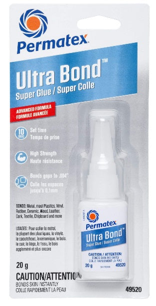 View full detailsPermatex (610) 49520 Permatex Ultra Bond Fast Drying Super Glue Adhesive - 20-g