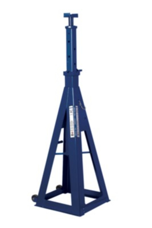 HW93512. 10 Ton High Reach Jack Stands. Features: Pin style column adjust in 2-inch height intervals. Heavy duty square tubing. Large saddle secure...