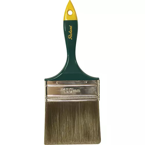 MPN: 80404 Straight cut paint brush 100% polyester bristles Short green handle with yellow tip Specifications Brush Width 4" Handle Material Plasti...