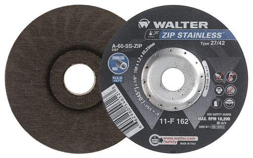View full detailsWalter 11F162 ZIP STAINLESS™ 6 X 3/64 X 7/8" TYPE 27 GRADE: A-60-SS-ZIP TYPE 27 PK 25
