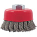 - Knot twisted wire cup brushes offer a more aggressive cutting action than crimped brushes due to the impact action of the knots and the stiffer wire