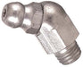 5200 Thread-Forming Grease Fitting, Head Angle: 45°, Fitting Thread Size: 1/8", Fitting Thread Type: NPT. 11/8" pipe threaded fittings constructed for additional strength. Popular for use in the construction and agricultural industry and large industrial machinery. Head Angle 45 °. Fitting Thread Size 1/8 in. Fitting Thread Type NPT. Hex Size 7/16 in. Overall Height 7/8 in. Shank Length 19/64 in.