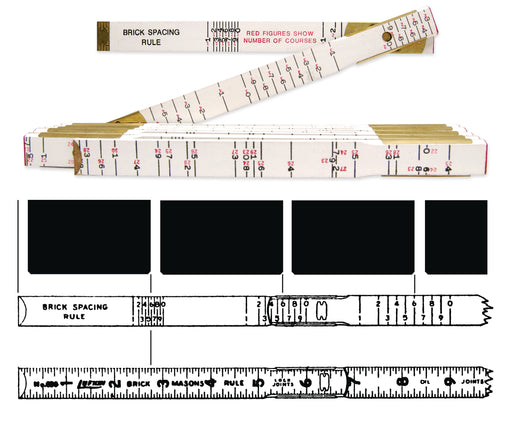 5/8" x 6' Brick Mason Red End® Wood Rule. Used By Bricklayers. Graduated Vertical Inches to 1/16Ths, Both Edges. Brick Mason Scale on Inside, Red C...
