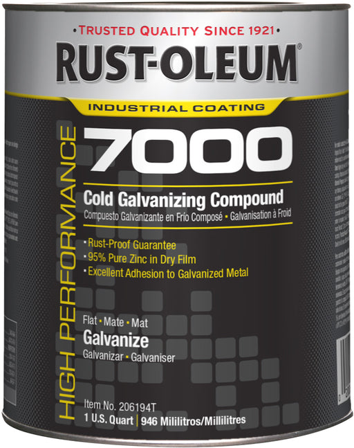 View full detailsRust-Oleum (210) 206194T Rust-Oleum HIGH PERFORMANCE 7000 System Cold Galvanizing Compound 1 QT