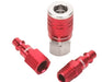 ColorConnex is a patented system that allows colour-to-colour matching of couplers and plugs among the standard pneumatic interchanges. Industrial. By using ColorConnex to dedicate line use, you can ensure you never use a lubricated line for a dry line application, preventing cross contamination. Includes: (qty 1) FNPT coupler, (qty 1) FNPT plug, and (qty 1) MNPT plug. Red.