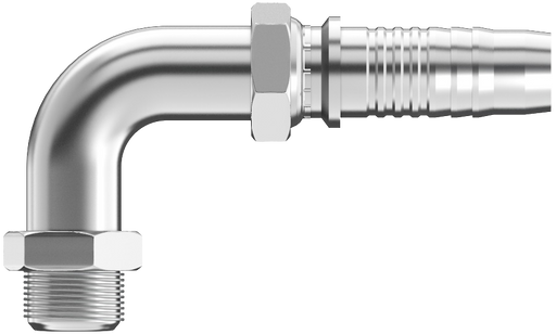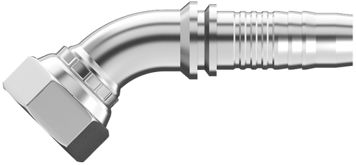 Hydraulic Fitting: Uni-Crimp. JIC 37 Degree Flare. Female. w/Swivel. 90 Block Elbow. Hose ID: 1-3/32. Thread Size: 3/4-16.