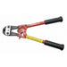 14" Industrial Grade, Center Cut Cutter. Drop-forged precision ground, alloy tool steel jaws with center-cut blades. Cut materials up to Brinell 455 or Rockwell C48 hardness. Toggle joints turn 50 lbs of hand pressure into 4000 lbs of cutting pressure. Screw-type adjustment realigns edges. Lockplate keeps jaws from loosening. Steel handles with rubber grips. Designed, engineered, and manufactured in the USA. Made in the USA. NEVER use any H.K. Porter cutters on electrified circuits, wire, or cable! Cuts soft and medium materials up to 5/16 in thick or hard materials up to 3/16 in.