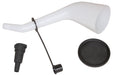 18232 Back Offset Funnel with Spout Cap and Lid Offset Spout for Hard-To-Reach Applications Like Adding Brake Fluid to Master Cylinders, Gear Lube to Differentials, Fluid to DEF Reservoirs and More. 10" tall translucent funnel with a 6-3/4" offset from ce