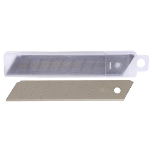 Tough ABS construction. SK5 steel blade stays sharp longer. Blades snap off for new cutting edge. Uses 18mm blades 18 mm SK5 Steel