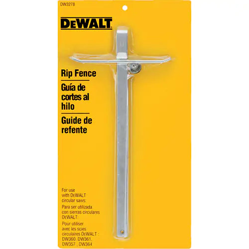 MPN: DW3278Rip fence for use with most DEWALT® circular sawsSpecifications Overall Width 5-3/8" Overall Height 12-1/2"