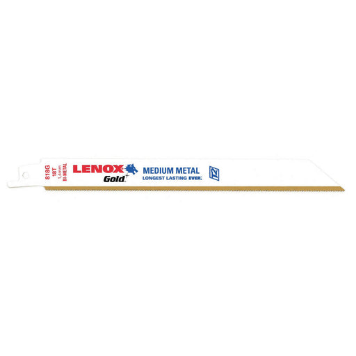 Reciprocating Saw Blades Gold Bimetal. 18 TPI. 9-in x 1-inch. Lazer Thick Metal - Arc Curved. 5 Per Pack. Use the thick and wide Lenox Gold recipro...