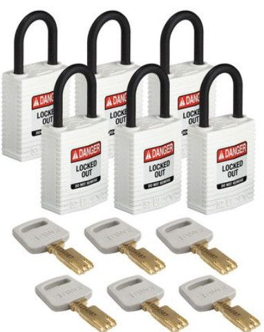 View full detailsBrady CPTWHT25PLKD6PK 6PK SAFEKEY COMPACT NYLON LOCKOUT PADLOCKS