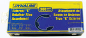 Dynaline (378) (378) E Retainer Ring Assortment, 300 Pieces / 9 Sizes Type: Retainer Rings. Detail Type: E Clip. Number of Pieces: 300. Number of Sizes: 9. Ext E Retainer Ring Assortment