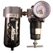 3/8" NPT deluxe FR duo combines the filter and regulator with brass fittings. The filter has an automatic overnight drain and the regulator is the relieving type. This pre-assembled unit has polycarbonate bowls with metal bowl guards and includes a gauge. Offers a maximum pressure of 150 PSI and 75 SCFM. 40 micron filter element.