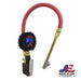 Compact Digital Tire Inflator with Pressure Gauge (255 PSI). Air Chuck & 15” Rubber Air hose – 1/4” NPT-Dual Head Straight Foot air chuck. Part S-531. HIGHLY-ACCURATE: Performance-tested and calibrated to provide a ±0.5 PSI accuracy reading. Versatile 4 measurement ranges (PSI, 0-255; BAR, 0-18; kg/cm2, 0-18; kPa, 0-1800). COMPACT BODY: Short heavy-duty aluminum body is designed to provide a comfortable weight ratio that allows for better in-use control. DIGITAL GAUGE: Large 2.5” dial and 0.1 display resolution are equipped with 360-degree swivel capability, LCD Screen with backlight for better reading in low light areas. Protective rubber boot also included. EQUIPPED: Full-swivel Dual Head chuck or Dual Head Straight Foot chuck& 15-inch hose (Schrader valve). AIR INLET: 1/4” NPT.